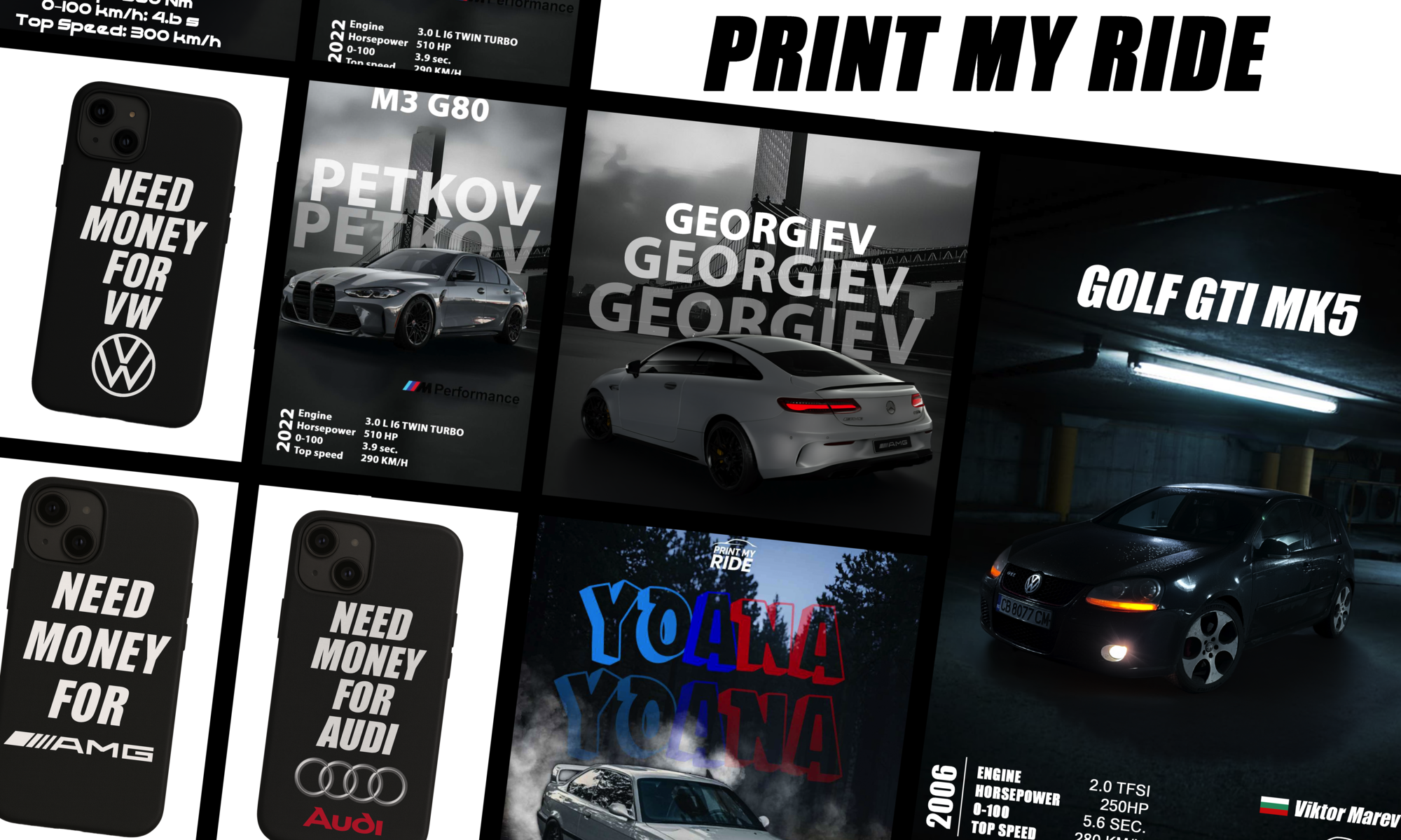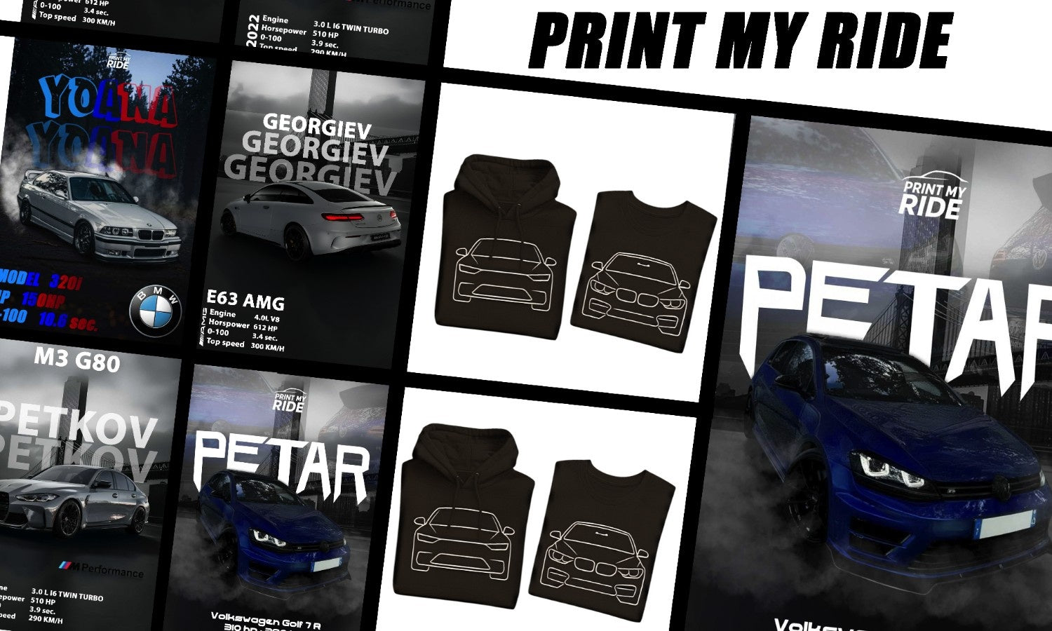Предлагаме персонализирани автомобилни постери, кейсове за телефони, тениски, суичери, 3D макети на автомобили и ключодържатели. Всичко се прави по поръчка и може да бъде персонализирано според твоята идея.